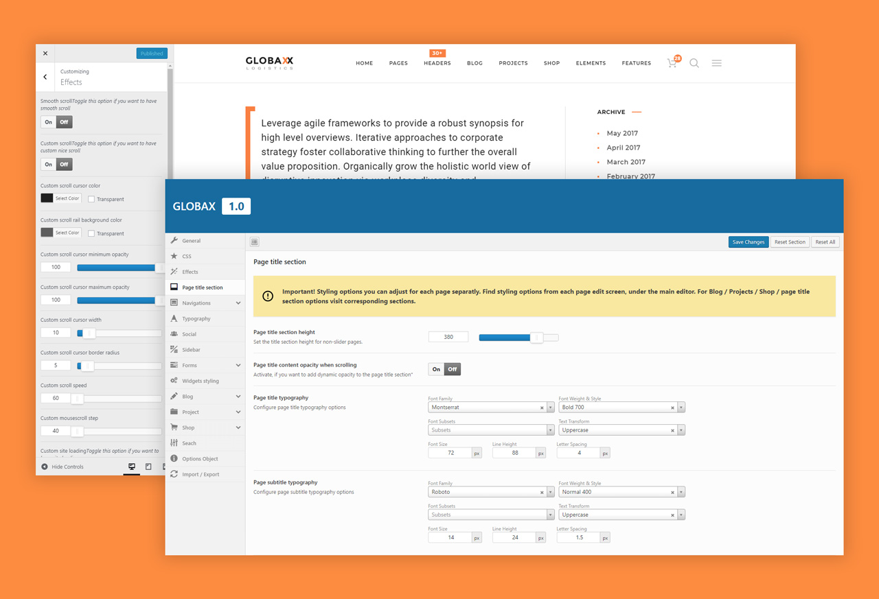 User-friendly option panel and tons of options to control: colors, typography, layouts, effects, styling and more
